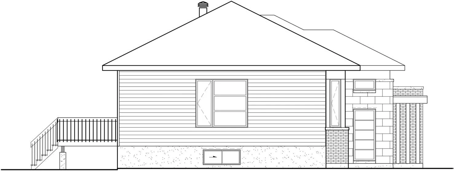 An abundance of glass gives this one-story design a modern appearance. The fresh foyer hosts a handy coat closet. Just five steps up, your guests can relax in the living room as they give you updates on their family. Whip up some refreshments in the up-to-date kitchen, with its island snack area. Sliding glass doors allow everyone to get some fresh air as they enjoy your prize-winning flowers. A full bath with a garden tub serves two bedrooms with ease. Perhaps you will dream up some big ideas for the basement; how about a recreation room? Remember that the home's narrow width makes it suitable for virtually any lot.