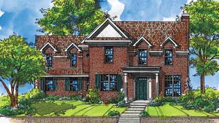 A formal dining room and a living room flank the foyer of this two-story home, where Colonial- style design features accent the exterior and a modern floorplan graces the interior. The spacious family room offers a fireplace and a bayed sitting area, and leads into the breakfast nook adjoining the roomy island kitchen. The luxurious master suite also boasts a bayed sitting area, as well as a generous walk-in closet and a private bath with a corner tub, a separate shower and a dual-sink vanity, while two additional bedrooms and a large bonus room above the garage share a second full bath.