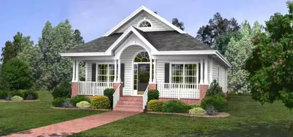 This inviting 1420 sq. ft. front porch design is simply irresistable. It makes a perfect starter home or vacation home, and lends itself to narrow lots, with its optional garage.
