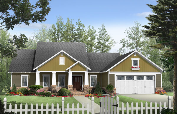 This home features beautiful craftsman styling. The expansive master suite includes trayed ceilings, large his and her walk-in closets, an oversized jet tub, separate shower, compartmentalized toilet and dual vanities. The trayed ceiling in the great room makes the home feel larger than it actually is. The open floorplan of this home includes a split-bedroom layout, and features the much-requested gas logs or conventional fireplace. Enjoy the rear covered porch, perfect for those family bar-b-ques. Large kitchen features popular raised bar for meals and conversations with family. You just can't go wrong with this home plan!