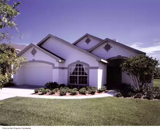 This innovative plan takes advantage of an angled entry into the home, maximizing visual impact upon entering, and makes it possible to have four bedrooms.