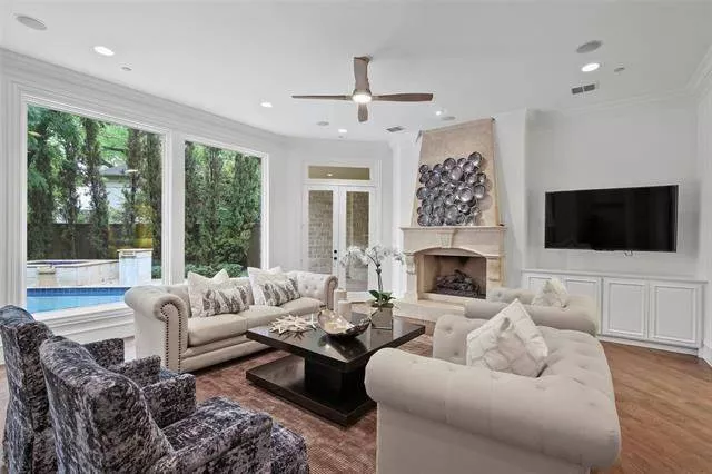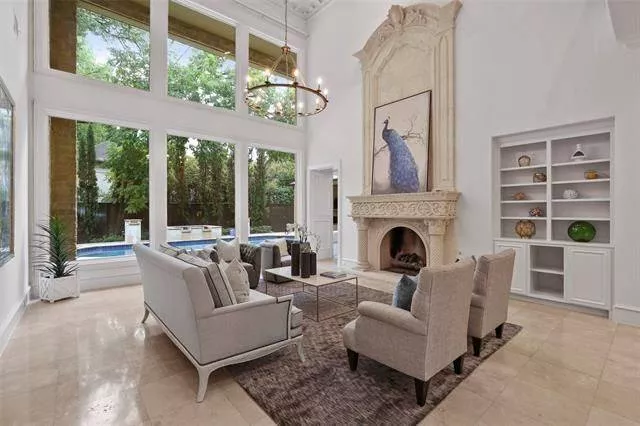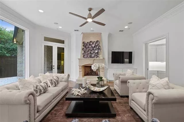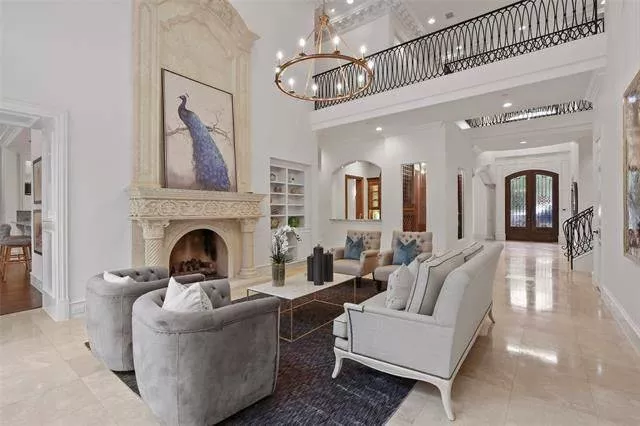 fireplaces and crown molding throughout. Entry through the two-story covered entry into the grand