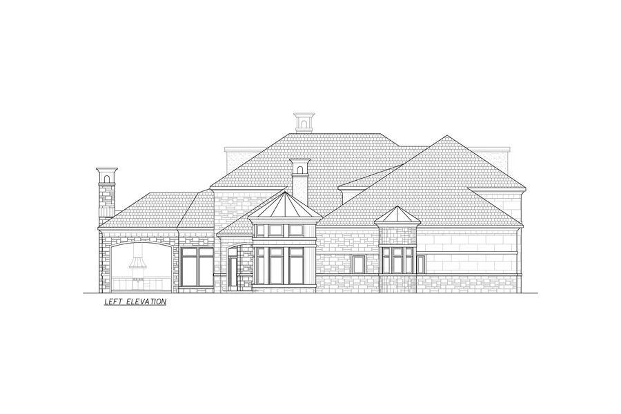 the side entry, three-car garage, completing this luxury five bedroom elegant luxury home plan.