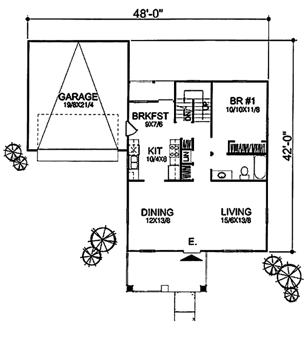 This compact design offers all the necessities in just under 1,300 sq. ft. A deep front porch leads to an open living and dining room. Down a center hall, a main-floor bedroom and bath are on the right, while the breakfast nook and galley kitchen can be found on the left. A grilling porch is accessible from the nook. A cutback staircase at the back of the house leads up to two more bedrooms and a bath on the second floor or down to a full basement.