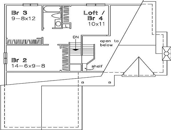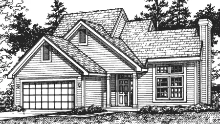 An expandable plan gives flexibility to this three bedroom plus loft, 1 1/2 story home. Entry views through living and dining spaces with impact of fireplace. Vaulted ceiling open to second level loft, which can function as a fourth bedroom Transom windows add drama and natural light to spaces.