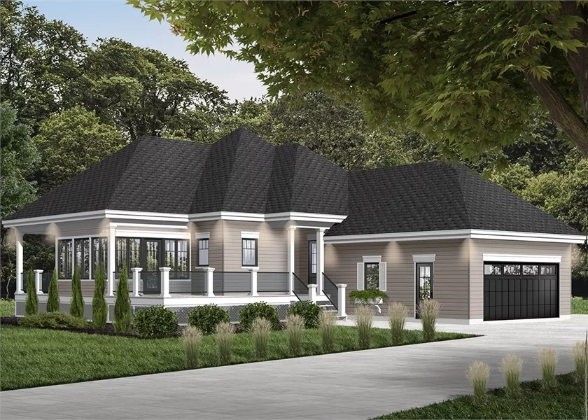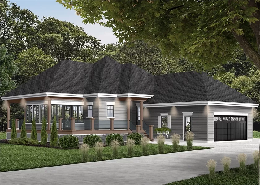 This bright and cheery cottage is surprisingly feature-rich, given its economical size. Ideal as a first home, a down-sizer for baby boomers, or a vacation property, this little charmer fits many of life's circumstances! The entry area welcomes visitors with a front porch, promises of conversations on the deck, and covered entryway. A double garage allows for ample parking and storage and easy access for getting groceries to the kitchen. With 9-ft. ceilings, an open concept living area, and abundant windows, size does not seem to matter in this cozy home. The living room is oriented to enjoy the backyard, thanks to ample windows and direct access to a covered deck. The dining area transitions easily to a sun room, whose doors open forward and back to allow an easy outdoor extension of living space. The master suite includes a private bath with double vanity and an oversized shower. A second bedroom at the front of the house has a bath that is conveniently located. If desired, the front bedroom could be repurposed as an office. Additional bedrooms can be added to the unfinished basement during construction or as the need arises. Options abound!