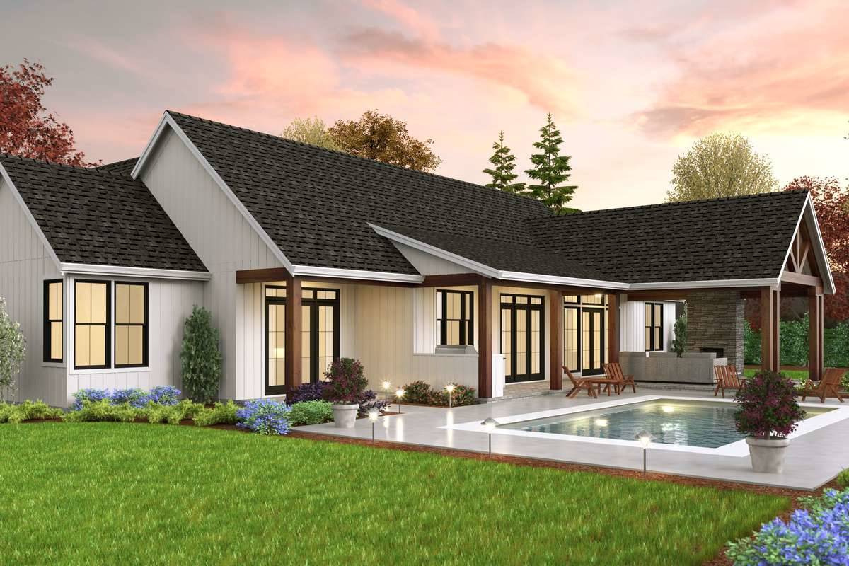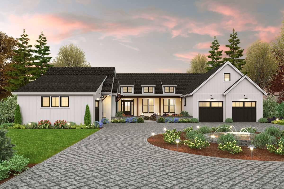 Everyone will enjoy this elegant Farmhouse plan! This single-story 3,669 square foot design is ideal for hosting any event, regardless of the size. The amount of space and opportunity within this home is incredible! Get extremely comfortable knowing that there are four bedrooms and four and a half bathrooms. Also, soak in this plan's natural flow amongst its rooms and easy navigation throughout the home. Impressively this plan features two kitchens, one inside and outside. Notice too, the walk-in pantry. The master bedroom is perhaps one of the highlights of this home, featuring a spa bath with a walk-in closet and a private porch. You'll fall in love with the fact that this home has two separate garages, one for the main entrance and one for the guest apartment. This house plan is truly magical and easy to love.