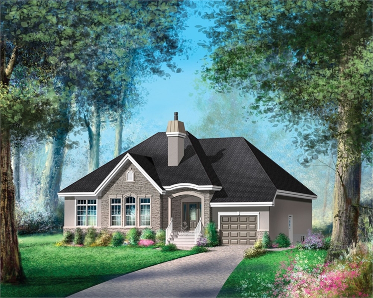 Hipped rooflines and stone accents adorn this affordable cottage house plan, with two bedrooms, 2.5 baths and 1,856 square feet of living area. Relax in the great room of this home plan and share a few laughs, as a fire crackles in the fireplace. The island kitchen serves the dining room and the breakfast nook with style and grace. Consider al fresco dining on the breezy rear deck. Double doors introduce the quiet master bedroom, with its handy walk-in closet. A garden tub anchors the private bath, which also contains a separate shower and a single sink. A smaller bedroom offers a personal bath. Our customers love the sitting area near the kitchen of this home design.