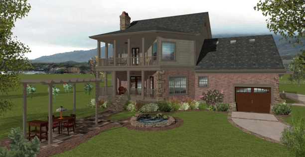 its features. Its use of low maintenance composite lap & shake siding and brick finish are accented