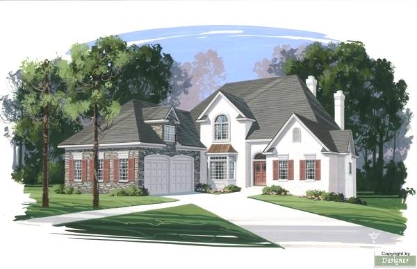 This elegant European stucco and stacked stone home features 3,264 sq. ft. of living space. Highlighting the 15'x20' lower level master suite is a see-thru fireplace. The master bath, with spacious dressing area, has a roomy walk-in closet, separate vanities, commode closet, separate garden tub and shower and a linen closet. Also found on the lower level are the kitchen, breakfast room, laundry room, powder room, 14'x14' formal dining room, sunny sunroom and spacious great room with fireplace and built-in bookcase.