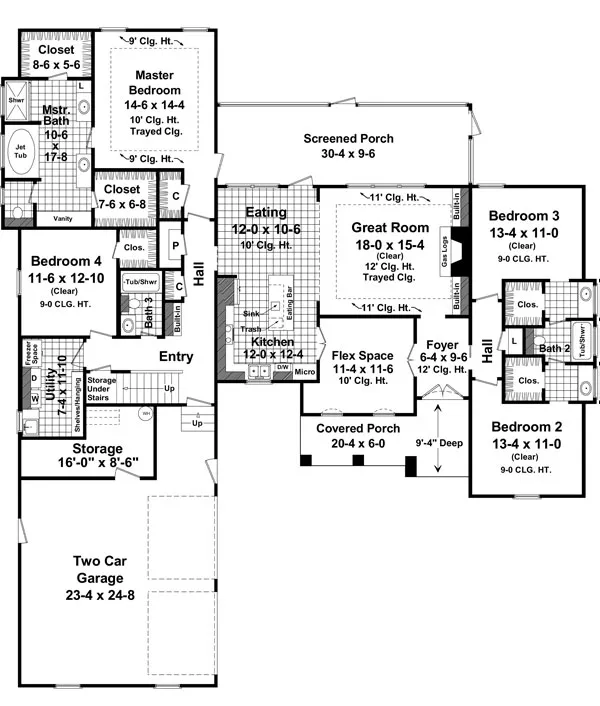 This inviting home has European Country styling with upscale features. The large front and rear porches add plenty of usable outdoor living space, and include easy rear access to the master suite. Expansive great room includes a beautiful trayed ceiling and features built-in cabinets and a gas fireplace. The spacious kitchen features an oversized island with a large eating bar and breakfast area. The hall bath is equipped with dual lavatories for convenience. The master bedroom has a raised ceiling and opens into the well-equipped bath with dual lavatories, oversized jet tub, and large his and her walk-in closets. There is a storage area off the garage for projects and storage. This house also features a Study that could be used as a home office, dining room, or playroom. This is a very flexible home with plenty of options to choose from. An excellent floorplan layout and a great value for your family!