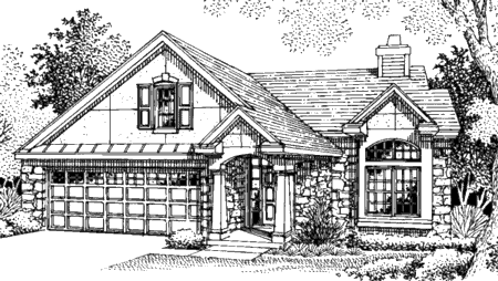 An exciting European exterior flair is created by the use of stucco, stone, columns, arches over the entry and transom windows. The excitement continues on the interior with the vaulted living room, complete with bright arched transom, open stairway leading up to the informal media loft, and a see-through fireplace. The formal dining room enjoys the other side of the fireplace for cozy entertaining. The angled kitchen is spacious enough for a breakfast table next to a bank of windows to brighten the morning meal. The master bedroom is located on the main floor, and offers a walk-in closet and private full bath next to the powder room for cost effective plumbing. There are two additional bedrooms upstairs, each with spacious walk-in closets, another full bath and the media room for TV watching, home computing or quiet, out-of-the-way reading.