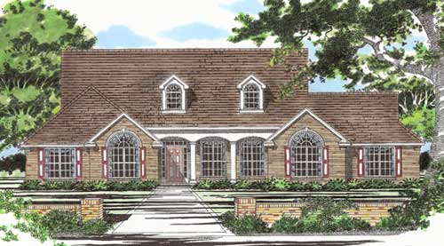 Roof dormers, arched windows and a columned front proch add a touch of elegance to this traditional home. The great room ceiling vaults to 11'-6" in the center. Popular features include country kitchen with an island, a formal dining room and a utility/mudroom. The two car garage is side entry.