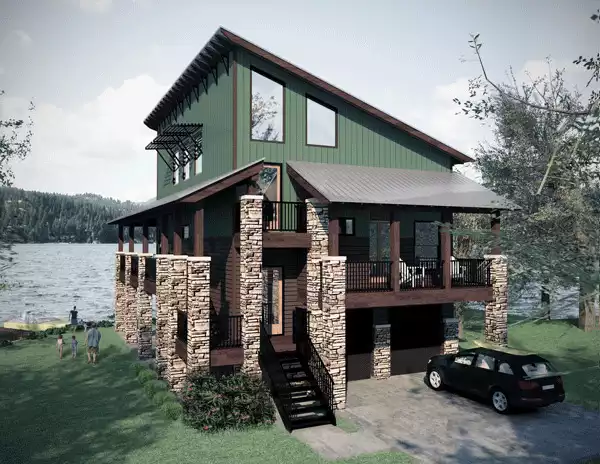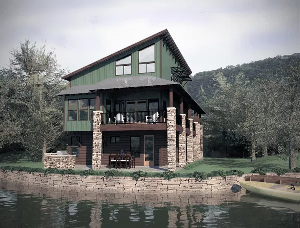 The Lake Austins name is perfect, because it is the perfect plan for a lakeside, coastal or Mountain View lot. This house design accommodates a view and provides open space for fun while having a narrow footprint to fit many of these prime lots. The wrap around Covered Balcony captures the views as well as the breezes. The Master Bedroom is privately situated on the main level with its own private Balcony, and the Master Bath has a walk-in shower.
