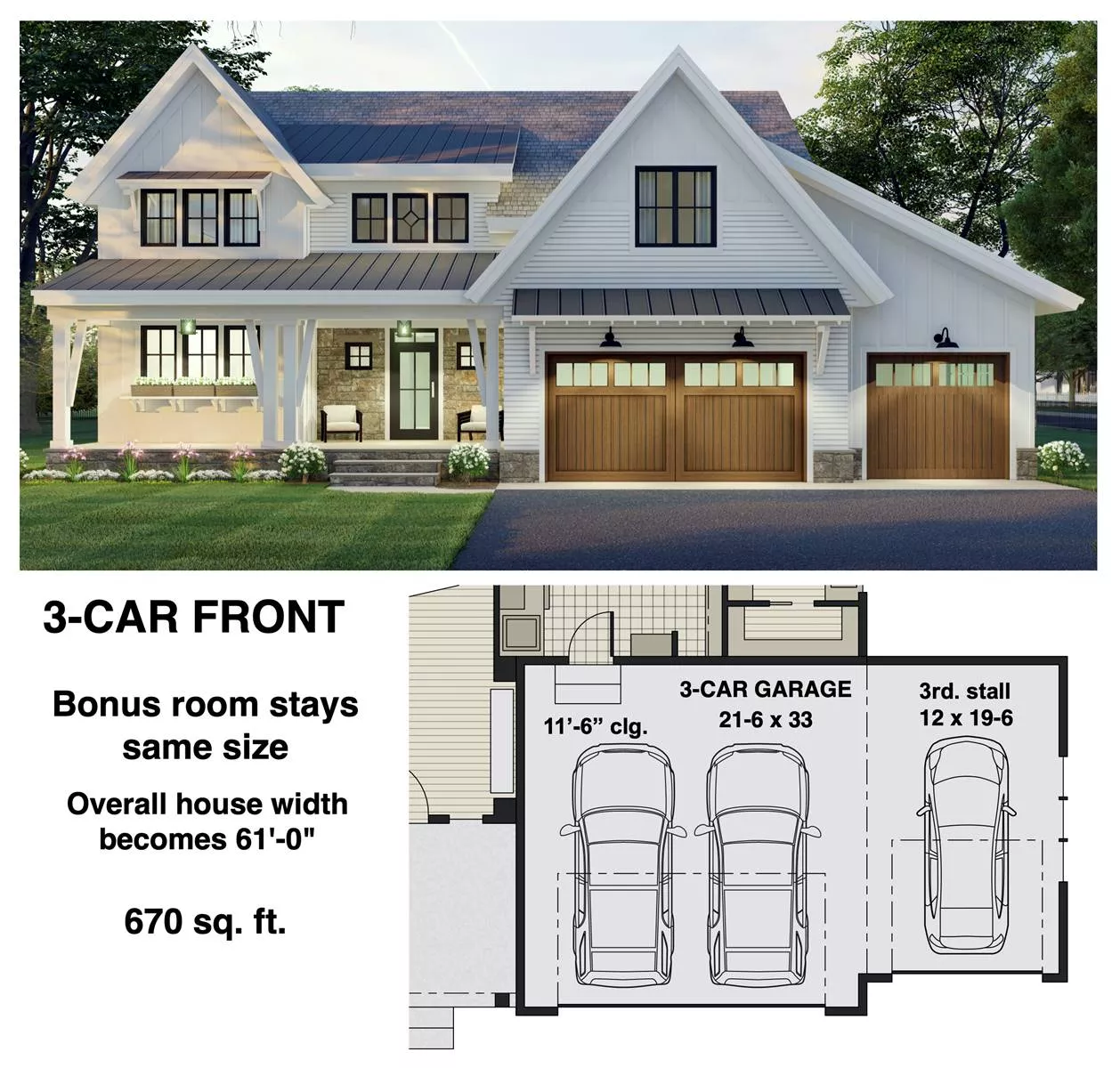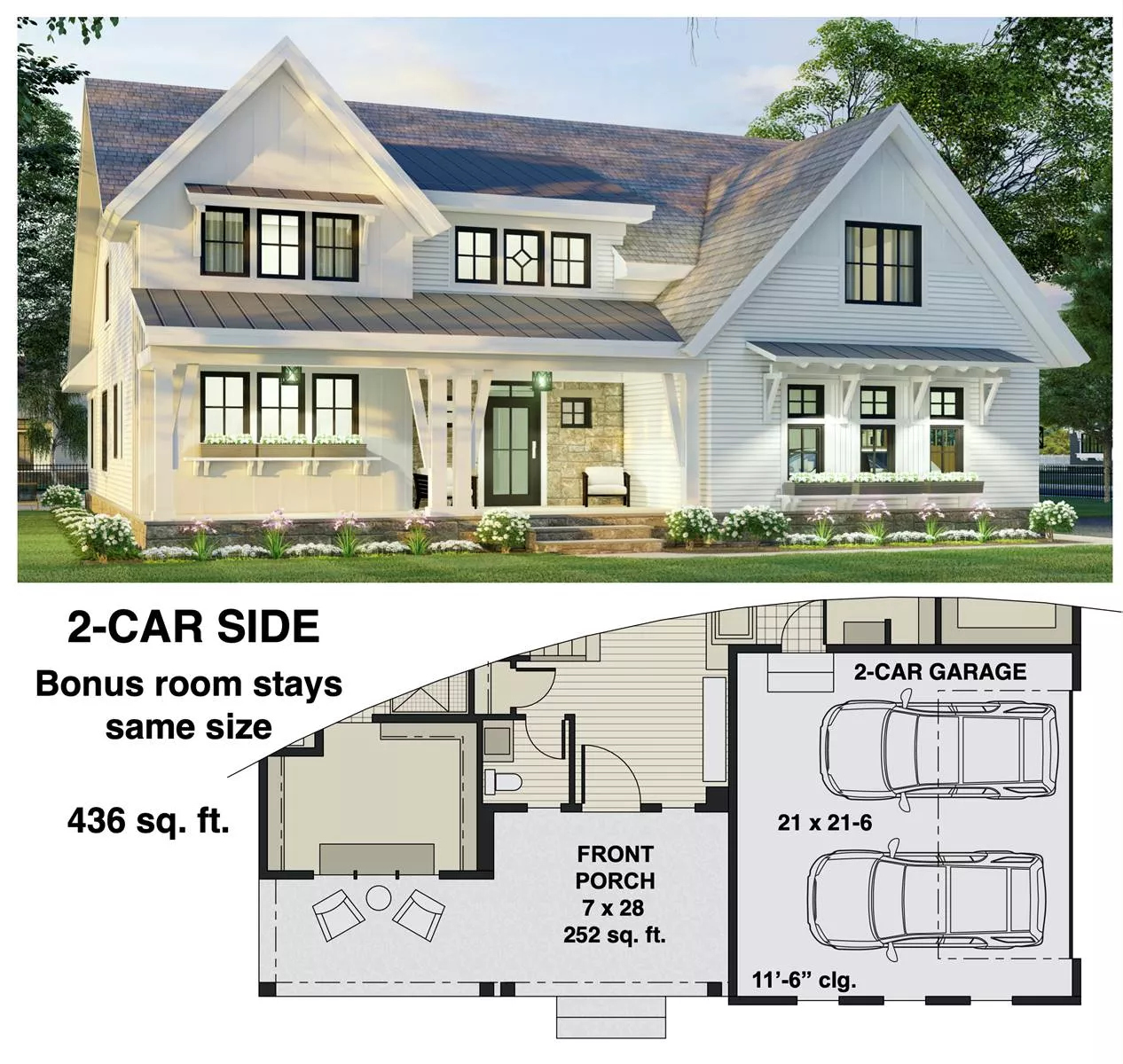Customizable country charm is the name of the game with this lovely home. Standing 2-stories tall and offering 2,657 square feet of open space, this farmhouse-inspired plan is the perfect option for both now and the future. Offered with 3 bedrooms, there is the capability of adding a fourth thanks to the future bonus room space that can be finished to your exact needs and specifications. And speaking of choosing areas that fit your needs, check out all of the garage size and location options, perfect for creating a home tailor-made for you. Even the main areas are ready for your unique touch. Imagine all that you could do with that spacious island kitchen with its walk-in pantry and prep kitchen area. And think about all of the fun memories that you  and the family will make as you gather in the open living room or out on the covered back deck. There are even added bits of privacy on the main floor thanks to the conveniently nearby master suite and the equally as convenient home office. Plus, all of the auxiliary bedrooms are upstairs, creating a nice separation and extra relaxation for everyone.