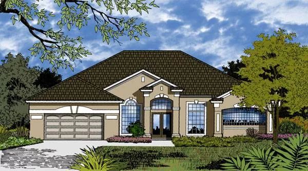 This plan is a real stunner. This 5 bedroom 4 bath estate home leaves nothing out. Plant shelves, arch ways, and decorative niches are found throughout this home. The kitchen features an island and extra large pantry. The fourth and fifth bedrooms are great flexible space that any family can customize to their needs. These rooms can work as mother-in law suites, nursery, guest rooms, offices, or media rooms. The most unique design aspect of this home is the master suites oval shower. This shower actual is used as an architectural element. The Monaco is perfect for a lake or golf course home with wonderful views towards the back.