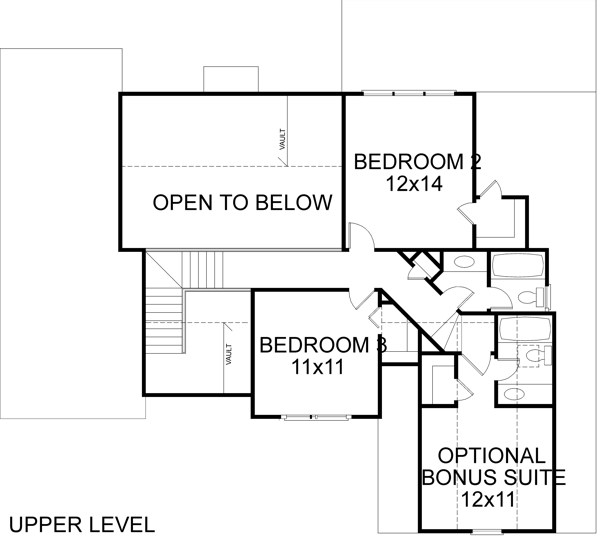 Upstairs, accessed by the "bridge", are the two secondary bedrooms, measuring 11' x 11' and 12' x 14'. A real plus is the optional bonus suite which enables expansion of this new design to 4 bedrooms and 3 1/2 baths. All upper level rooms have 8' ceilings. Foundation options include basement and crawl space.