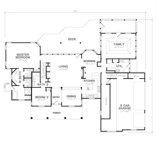 An optional bonus room above the garage is a popular feature of this country style four bedroom home. The master suite and one bedroom are located on the first floor. The three car garage is side entry.