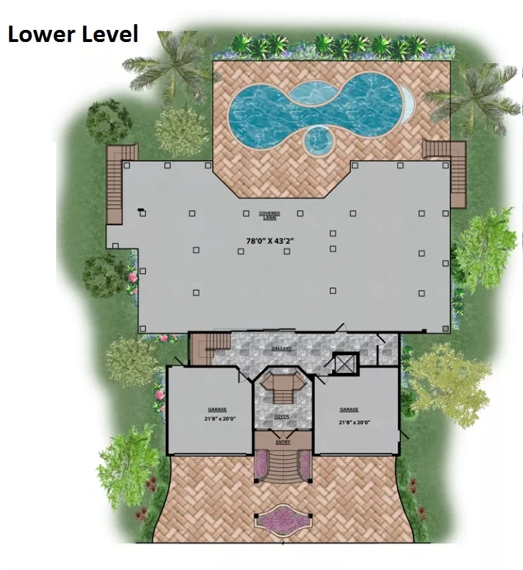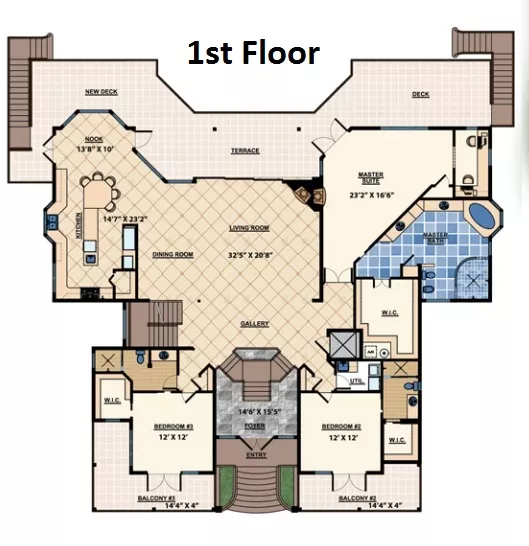 Take a walk through this spacious 3 bedroom, 4 bathroom fully loaded beach styled home with a wonderful open floor plan design. A 4 car garage connects to this 4,521 square foot home plan. On the bottom level you have a wonderful over-sized garage. Moving up to the main level you have two bedrooms to the left and the right of the entrance each with bathrooms, walk-in closets, and balconies. The master suite includes a gorgeous bathroom followed by an extremely spacious closet. In the center of the house you have the living room, off to the side is the dining room which leads into the kitchen. All lead onto the terrace which overlooks the fabulous pool!
