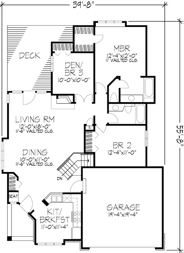 This affordable one-story has a covered entry to the side of the home. A vaulted ceiling crowns the living and dining area, which features a boxed-out window. The kitchen includes a snack bar that serves the living areas, plus room for casual meals. The master bedroom is highlighted by a vaulted ceiling and a private bath.
