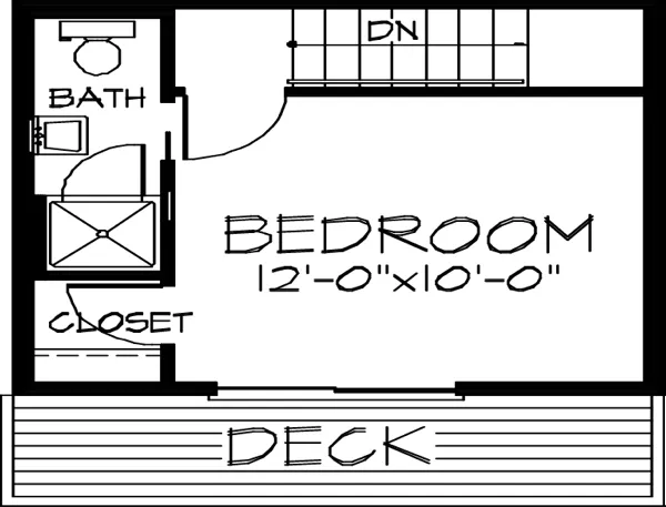 This open and attractive design features multi-level construction and an efficient use of living space. An elevated den overlooks the living room, which is enhanced by high ceilings with exposed rafters. The utilities and the kitchen are separated from the dining area by an eating counter. The upper level comprises the master bedroom and bath.