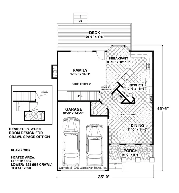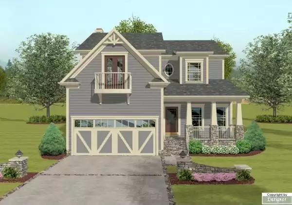 This 2,058 sq. ft. home offers spacious living in a compact design! Designed for today’s more narrow lots, this plan features three spacious bedrooms secluded on the upper level. A cheery front porch welcomes you into this Craftsman gem. Leading the way past a spacious dining room, the tile foyer arrives at a powder room, coat closet, family room and sunny breakfast nook & kitchen. The dramatic and spacious kitchen flows neatly from an angled pantry to the recipe desk and serving bar. Stairs off the family room deliver you to the upper level with an elegant master suite offering an abundance of storage in his-and-hers closets. A quaint sitting area with a balcony is a delightful surprise! With its corner shower, garden tub and separate toilet compartment, this luxurious bath completes the owner’s retreat. Two generous bedrooms sharing a Jack-and-Jill bath and an oversized laundry complete the accommodations of the upper level.