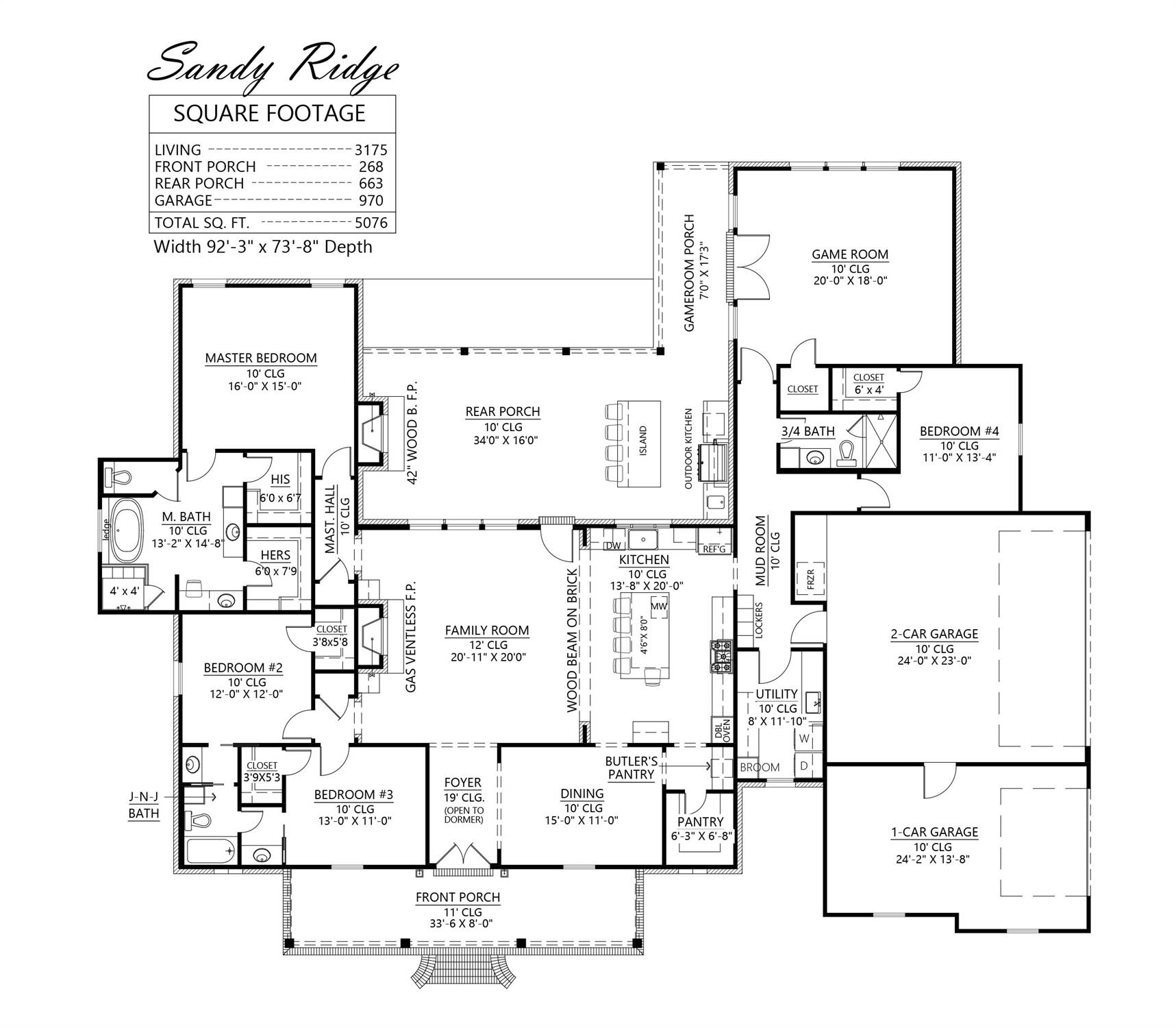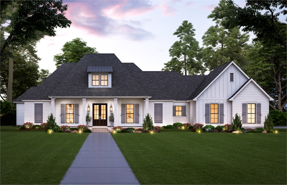 A refined and timeless style defines this stunning Southern plan. Plus, a ranch-style layout makes the 3,175 square foot layout totally accessible for people of all ages and abilities. This gorgeous attention to detail and an extremely practical design makes for an all-around amazing home that you have to see to believe. For starters, 4 large bedrooms and 3 bathrooms makes the plan great for new or growing families. Pay special attention to the marvelous master bedroom which comes complete with a stunning spa-style bath and dual his and hers walk-in closets. Did you notice that every bedroom in this home has its own walk-in closet? This means that your home will have tons of clutter-free space and ample storage all around. As you explore the main areas, marvel at the vaulted living room with its gas fireplace and open nearby kitchen with a gorgeous island and walk-in pantry. You'll also love the covered back porch and its entertainment capabilities, especially the full kitchen and wood-burning fireplace. Finally, take note of the practical additions such as the formal dining room and attached 3-car garage with tons of added storage space...total convenience all-around!