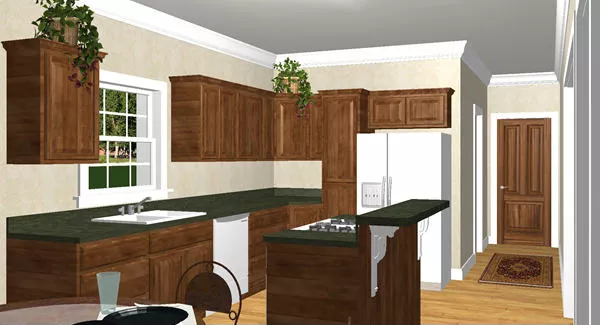 The great room anchors the floor plan. The room is large with a built-in entertainment center. Thats good because it adjoins the kitchen and dining room a nicely grouped area for entertaining.