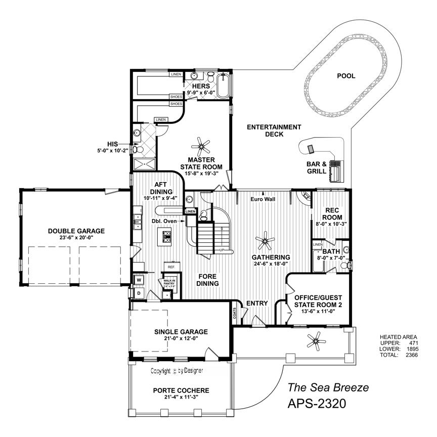 The unique main level Master State Room continues the nautical theme and includes His and Hers Baths and