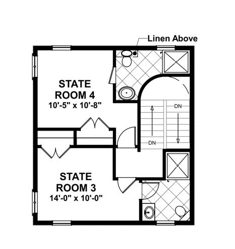 A "U" shaped stair leads to the upper level which includes two additional State Rooms, each featuring a private