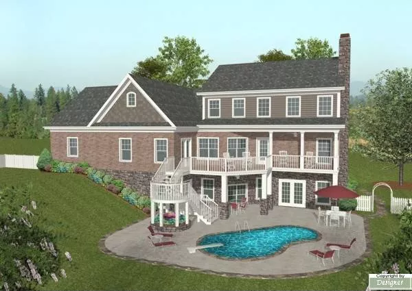 Outdoor living is enjoyed to the fullest with front and back porches and a roomy deck. We have featured a small pool in our rendering to spark the creative possibilities for your recreational space.
