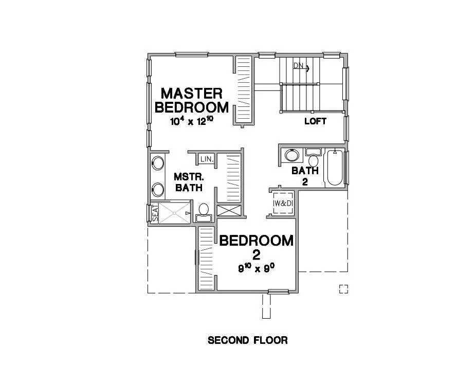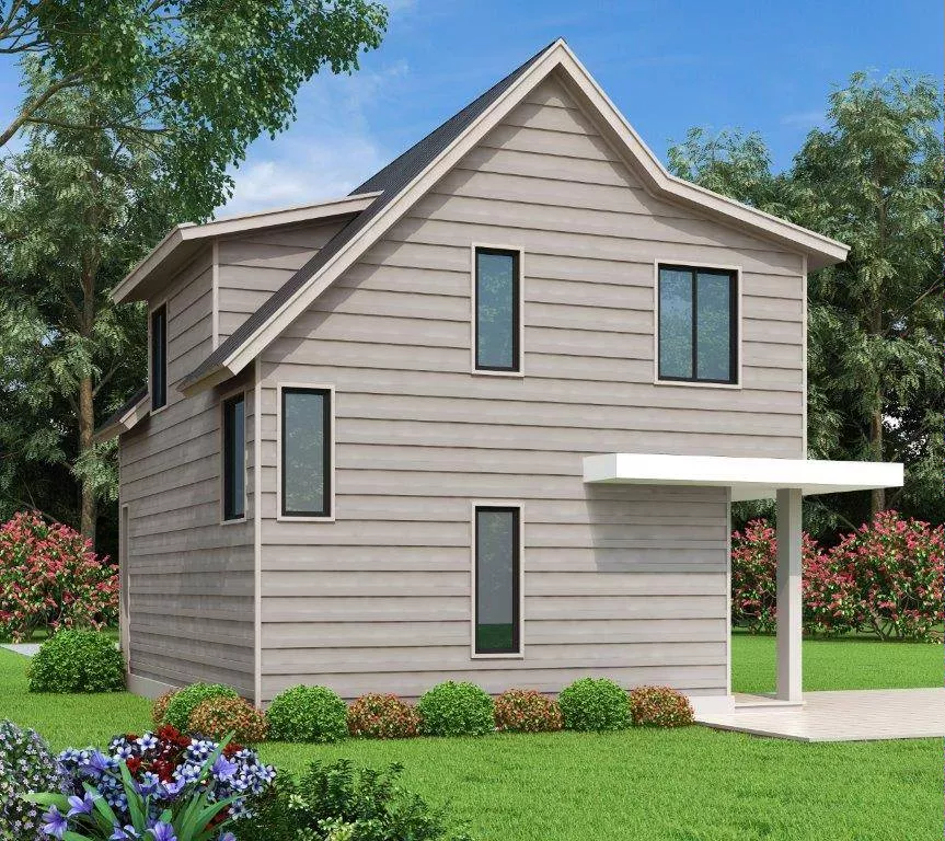 This 3-bedroom cottage is an affordable build and features 1,074 square feet of living space. The main level seamlessly blends the living room and dining area, which leads into a compact yet functional country-style kitchen. Upstairs, you'll find three bedrooms, including a master bedroom with an attached bathroom, a stackable washer and dryer, and another full bathroom for the secondary bedrooms.
