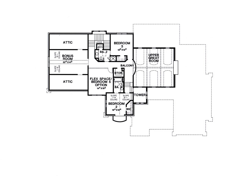The upstairs has two Bedrooms and Baths with a Game room or optional 5th Bedroom, Balcony overlooking the Great Room and Reading Tower. Also available is a Bonus Space over the Garage which could be converted into a Theater Room. Bedroom 2 has a private Bath and also has a romantic Juliet Balcony.