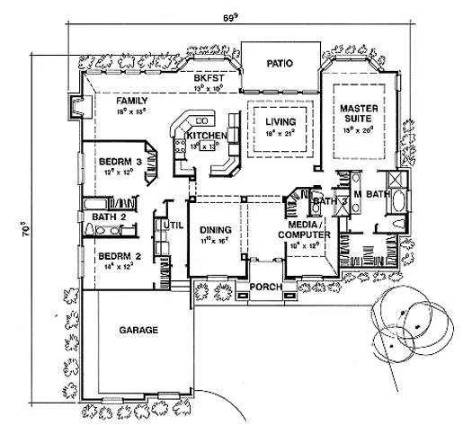 Beautiful brickwork establishes the quality of this home. Features include a remote master suite, island kitchen with serving counter to family and breakfast rooms, formal dining room, separate living and family rooms and a home office/ media near the entry.