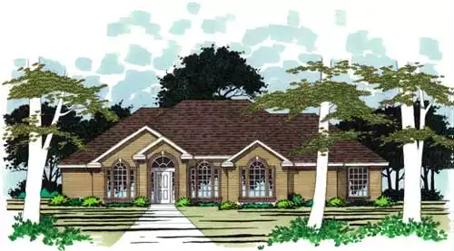 Traditional styling and careful attention to masonry deatiling set this exteior apart. The home features separate living and family rooms, a formal dining room and an island kitchen. Thea garage is side entry.