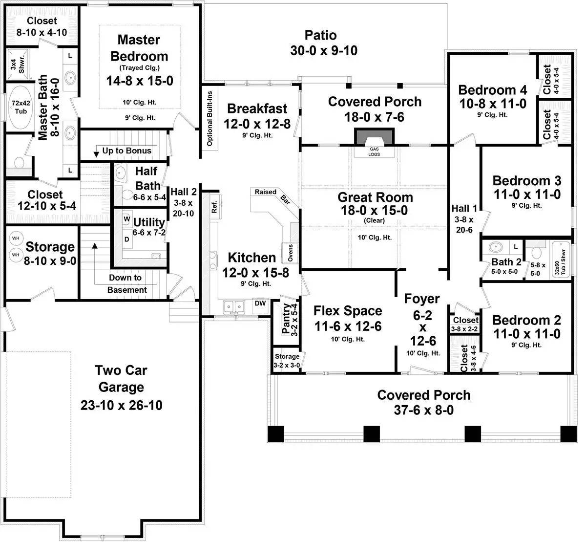 Looking for the house that has it all? Then look no further. This beautiful Craftsman home design features all the things that make a house a home. Four oversized bedrooms are complemented by large walk-in closets. The flex space provides a perfect spot for that home office, playroom, or dining room. A breakfast area, and a raised bar provide spaces for those family meals with close access to the fully equipped kitchen. The Great room includes a gas log fireplace, a coffered ceiling, and beautiful views to the covered rear porch beyond. The master bedroom also boasts a tray ceiling. The posh master bath leaves nothing out. The expansive garage provides plenty of room for oversized trucks and SUV's, and also includes a large storage area. The bonus room provides space for future expansion or for additional storage. This may be the perfect home for you and your family!