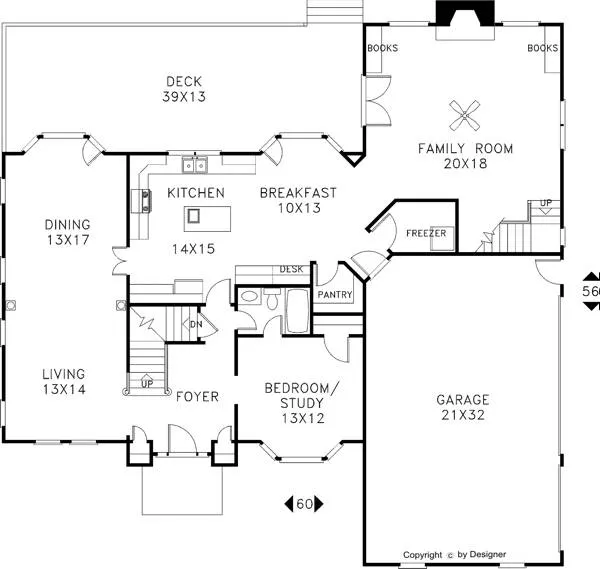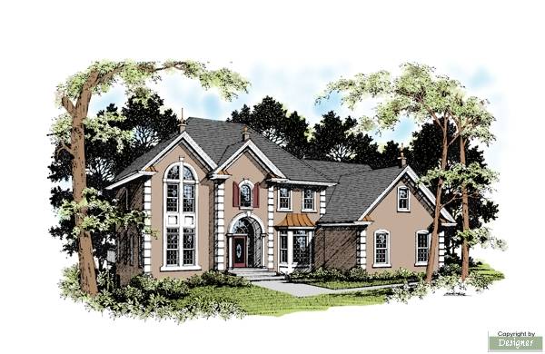 This 3,374 sq.ft. European stucco home features a dramatic two-story foyer. The convenient first floor bedroom with full bath can also be used as a study. The spacious kitchen and breakfast room area features a center island, built-in desk, walk-in pantry and separate freezer room. The large open family room has a fireplace and two built-in bookcases. The 39'x14' deck is accessible from the family room as well as the dining and breakfast rooms. The upper level is accessible by front or back stairs. The master suite with trey ceiling features his and hers walk-in closets, separate vanities in master bath and separate shower and garden tub. The large upper level laundry has a laundry tub and linen storage. Bedroom #2 has its own access to the hall bath. Bedrooms #3 and #4 share a private bath.