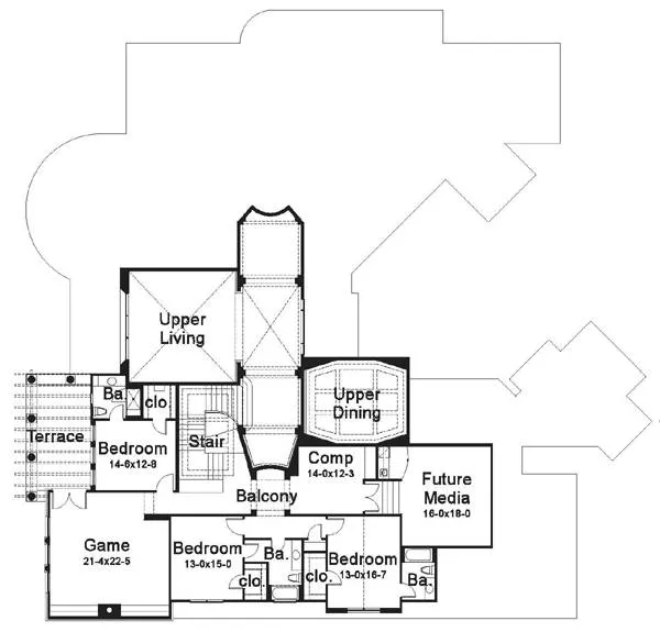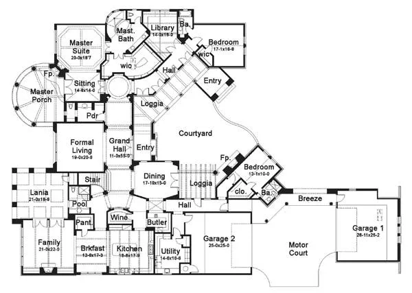 This design is of the utmost elegance and sophisticated style. It features an exuberant front Courtyard that includes an outdoor fireplace, perfect for outside socials. The Master Suite features a circular back porch that include pompous columns, making the rear view of the house just as beautiful as the front. The second floor includes it's very own Dining Area, as well as Game, Media, and Living Rooms. To enjoy the splendor of this home, one must merely gaze into it's luxurious splendor.