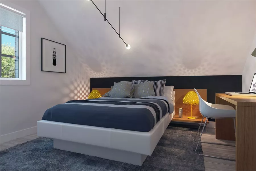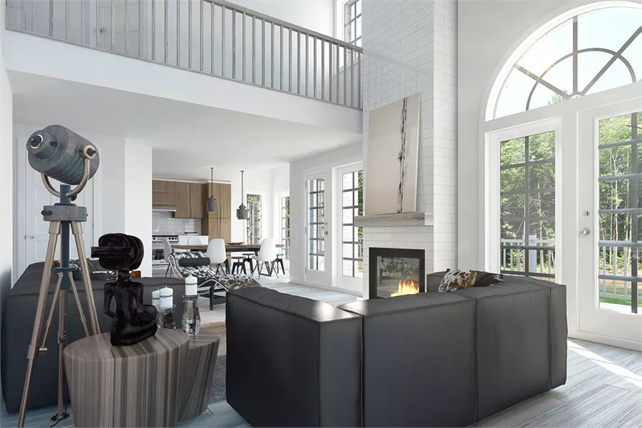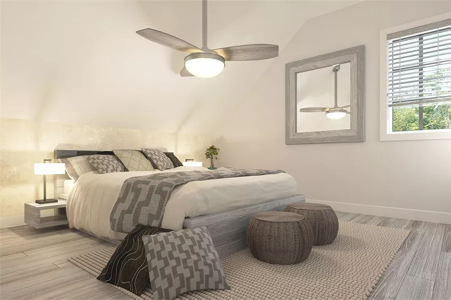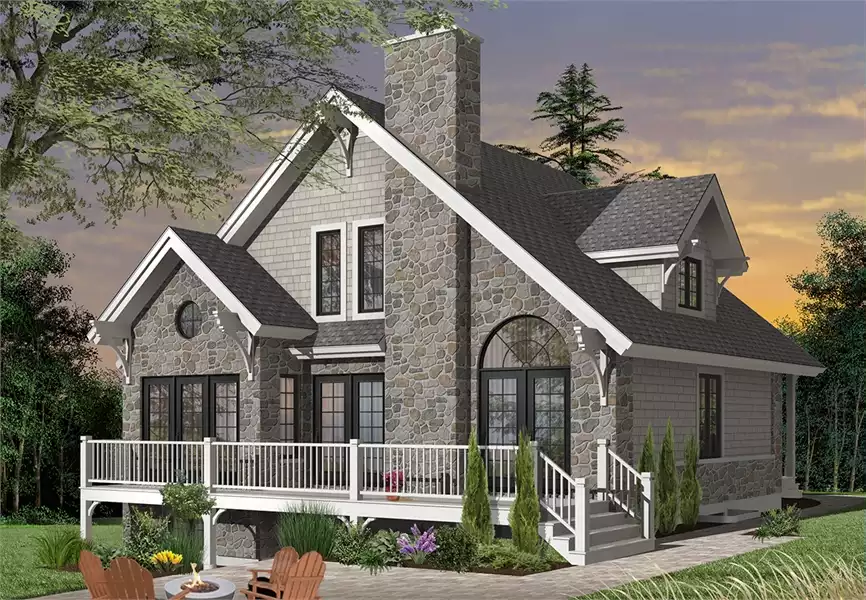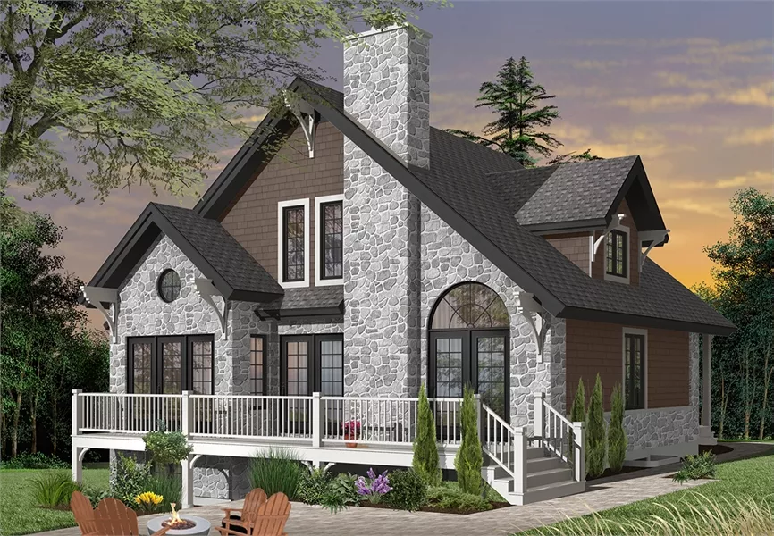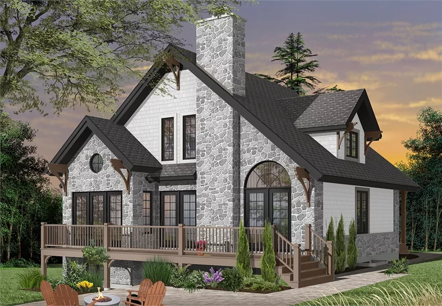 With the look and feel of a home picked straight from the countryside, this traditional style plan is brimming with charm. A wonderfully chic façade features a large porch and beautiful windows, highlighted by flawless stonework and complimentary wooden shake siding. Amidst the 2 stories of this 1,625 square foot home, you will find 3 bedrooms and 2 bathrooms, as well as several multi-functional and spacious areas, allowing this home to adapt to virtually any lifestyle. After entering past the covered porch and air-lock foyer, you find yourself in the vaulted, 2-story mezzanine and family room. From there, the home’s open layout flows in to the large kitchen and incorporated dining area, while the first-floor master suite can be found tucked away at the front of the home, allowing for a sense of secluded privacy. The second story finds two more bedrooms and a shared bathroom, a great space for kids or guests, while a balcony walkway looks down on the living room below, giving the space a grand and welcoming feeling.