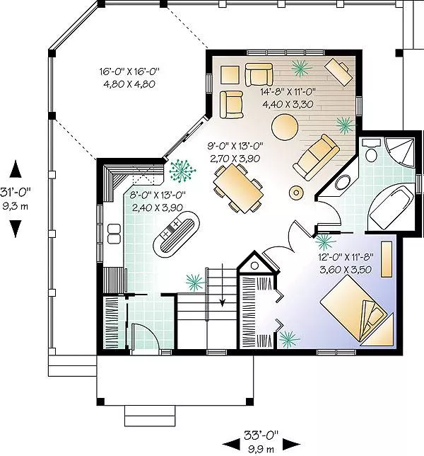 room for friendly conversation. All ceilings on this level are 9 ft. high. Consider the walk-out