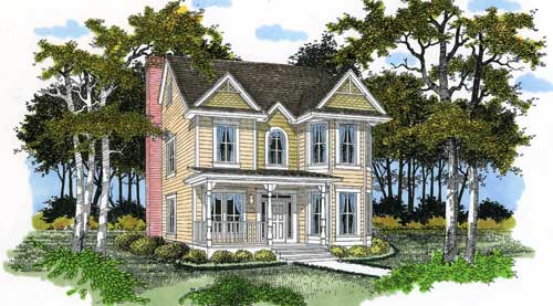 This Victorian style farm house has 10' ceilings at all first floor rooms and 9'in the second floor bedrooms and gameroom. The first floor study is an optional fourth bedroom and the gameroom also can become a bedroom. A two car detached garage plan is included.