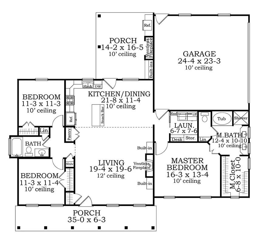 relaxing. This floor plan design has no wasted spaces and with 10' and 12' ceilings this 1500 square