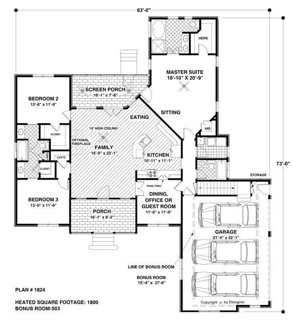 This delightful 1,800 sq. ft. plan is offered in two very distinct elevations. A quaint siding version is reminiscent of arts and crafts styling. While a brick and siding version is a little more traditional. The side entry garage offers parking for 3 cars or 2 cars and an ATV, lawn tractor, golf cartthe possibilities are endless! A covered front porch welcomes you home. Once inside, an incredible 16x221 family room flows into an eating nook and kitchen perfect for entertaining. Off the kitchen is a flexible room which could be a home office, dining room or guest roomyou decide! Easily accessible from this area is a full bath and spacious laundry room. Hidden in a private corner of this home is a roomy master suite with a sitting area. Other amenities are his-and-hers closets and a master bath with garden tub, shower and double sink vanity. The master suite has its own entrance to a screen porch which is also accessible from the family room. What a great place for coffee and the morning paper!