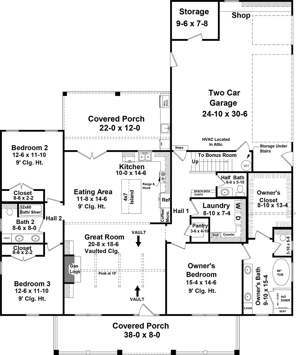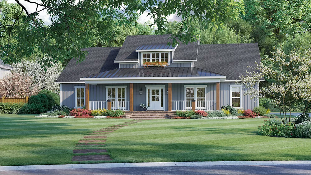 Think charming southern cottage meets rustic Craftsman styles and the result is this impressive family home. With its gently sloping roofline and lovely exposed wood accents, this design has top-notch curb appeal that perfectly compliments the amazing interior. Offered in a ranch layout, the 2,041 square feet is totally open and accessible for everyone of all ages and abilities. From the open living room and island kitchen to the master suite, everything that you could ever need is only mere steps away. And if you need space to grow either now or in the future, check out the large unfinished bonus room that sits atop the 2-car attached garage. The perfect area for adding your finishing touches to this great home!