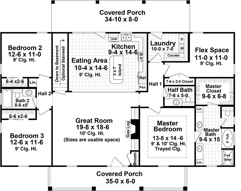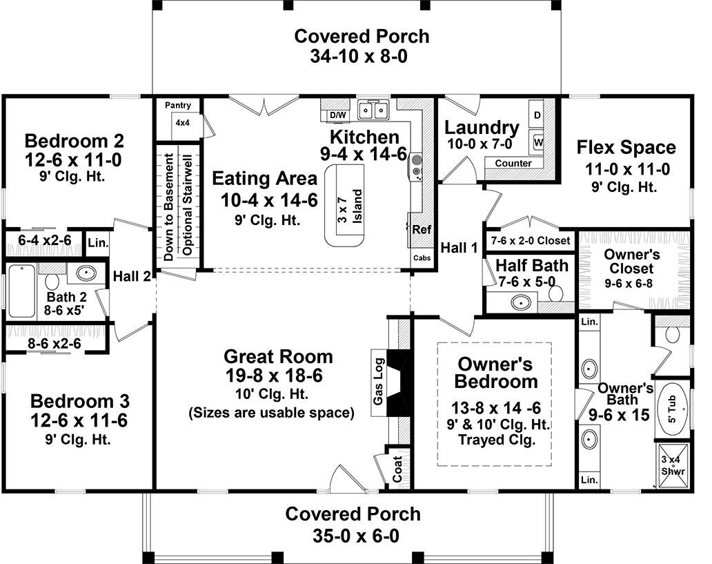 flex space which could be used as a fourth bedroom or an office. The great room has gas logs as well