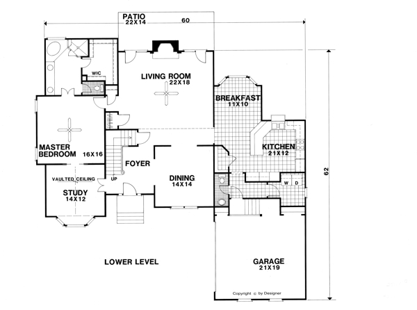 A much-requested feature is a first floor master bedroom. This design features just that. The 16'x16' master bedroom is highlighted by a ceiling fan. The master baths pampers the owner with separate tub and shower, double vanity and larger walk-in closet. Completing the lower level is a 14'x12' study with a bay window and pocket door entrance into the master bedroom.