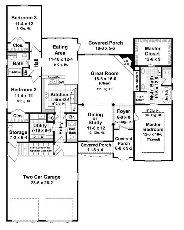 This home is designed to meet the "real world" needs of your family. Enjoy those lazy evenings on your large front and rear covered porches. Expansive great room features gas log fireplace, great views, and easy-access to the formal dining room/study. Large eating area and kitchen which includes a raised eating bar and a close-proximity to the utility room, half-bath, and great room. Master Suite includes oversized walk-in closet, jet tub, large shower, and seperate vanities. Plenty of storage. This is your family's next home!