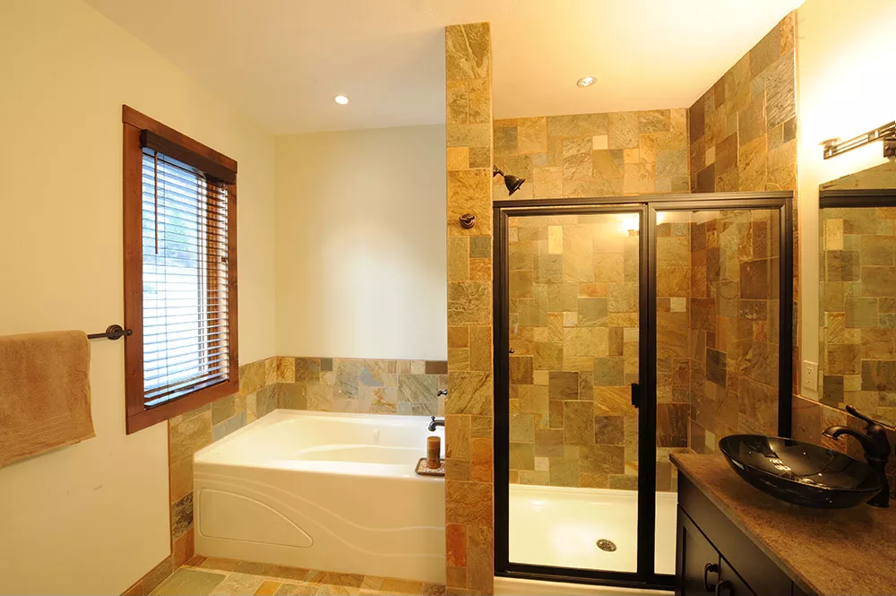 This rustic-looking chalet derives its charm from the use of stone, wood and timber accents in the
