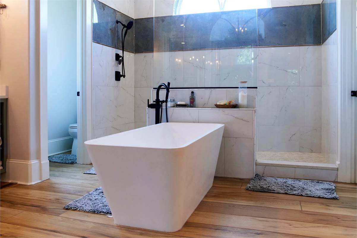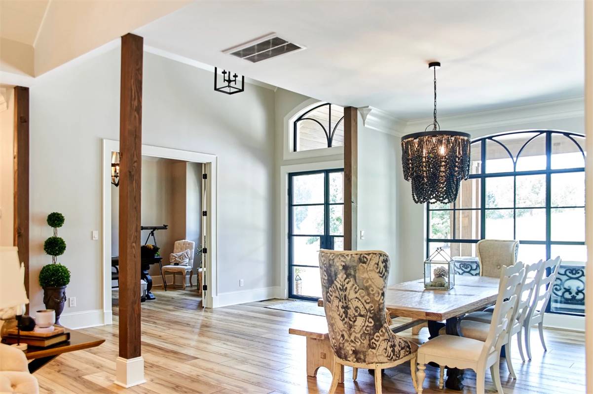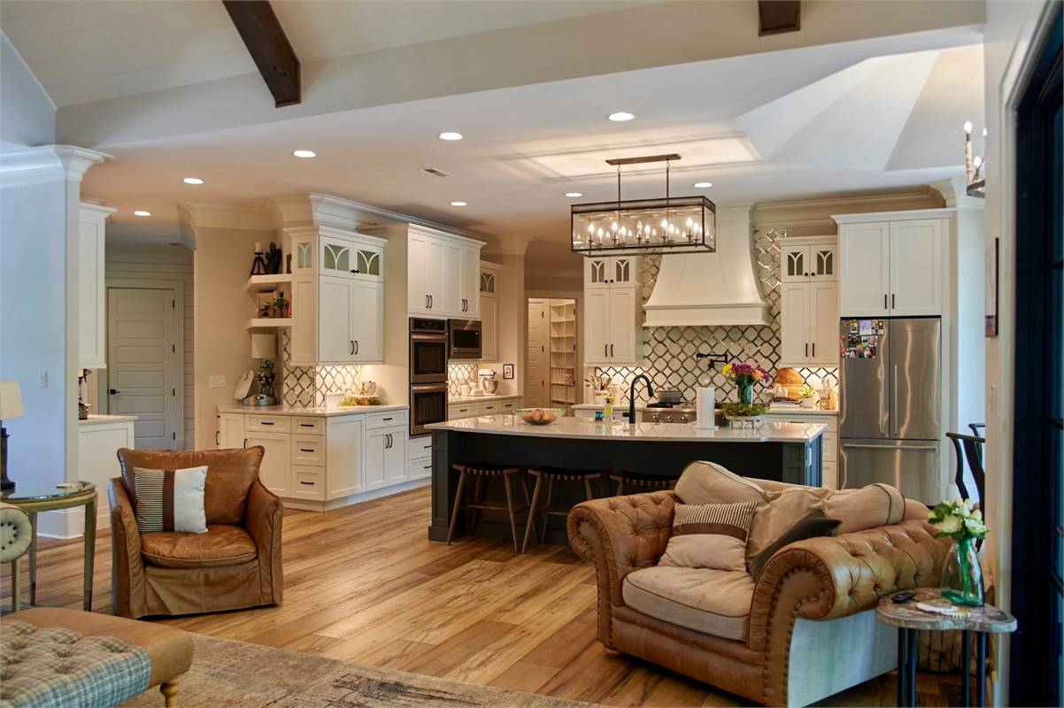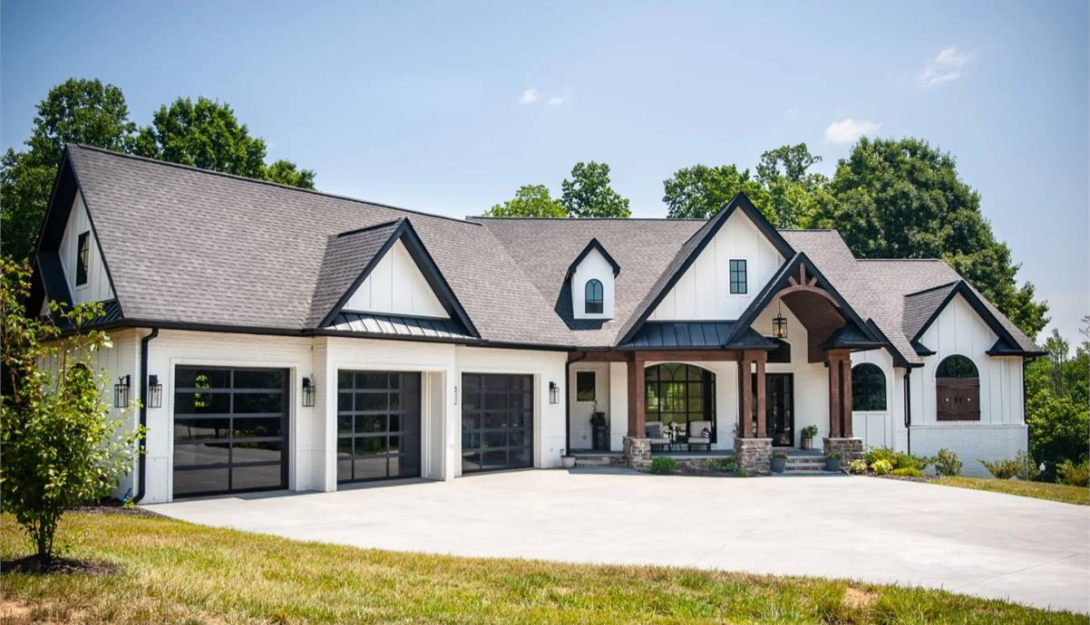 This 3,813 sq.ft. ranch design melds the coveted Modern Farmhouse clean lines with intentional notes of the decorative Craftsman. From the board and batten to the wood-accented front entry and over to the Gable that “peeks” out of the roof line above the diagonal 3 car garage, the elevated curb appeal is on a 10.