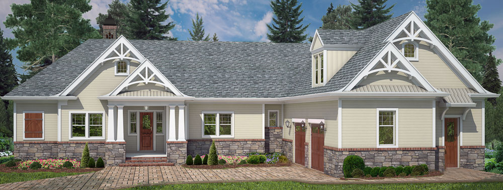 The Tilly Ranch House Plan is an amazing bungalow intertwined with the softness of a Country Home. Upon arrival you are amazed by its stunning curb appeal. There are large and swooping roofs, adorned with elegant gables & shutters.